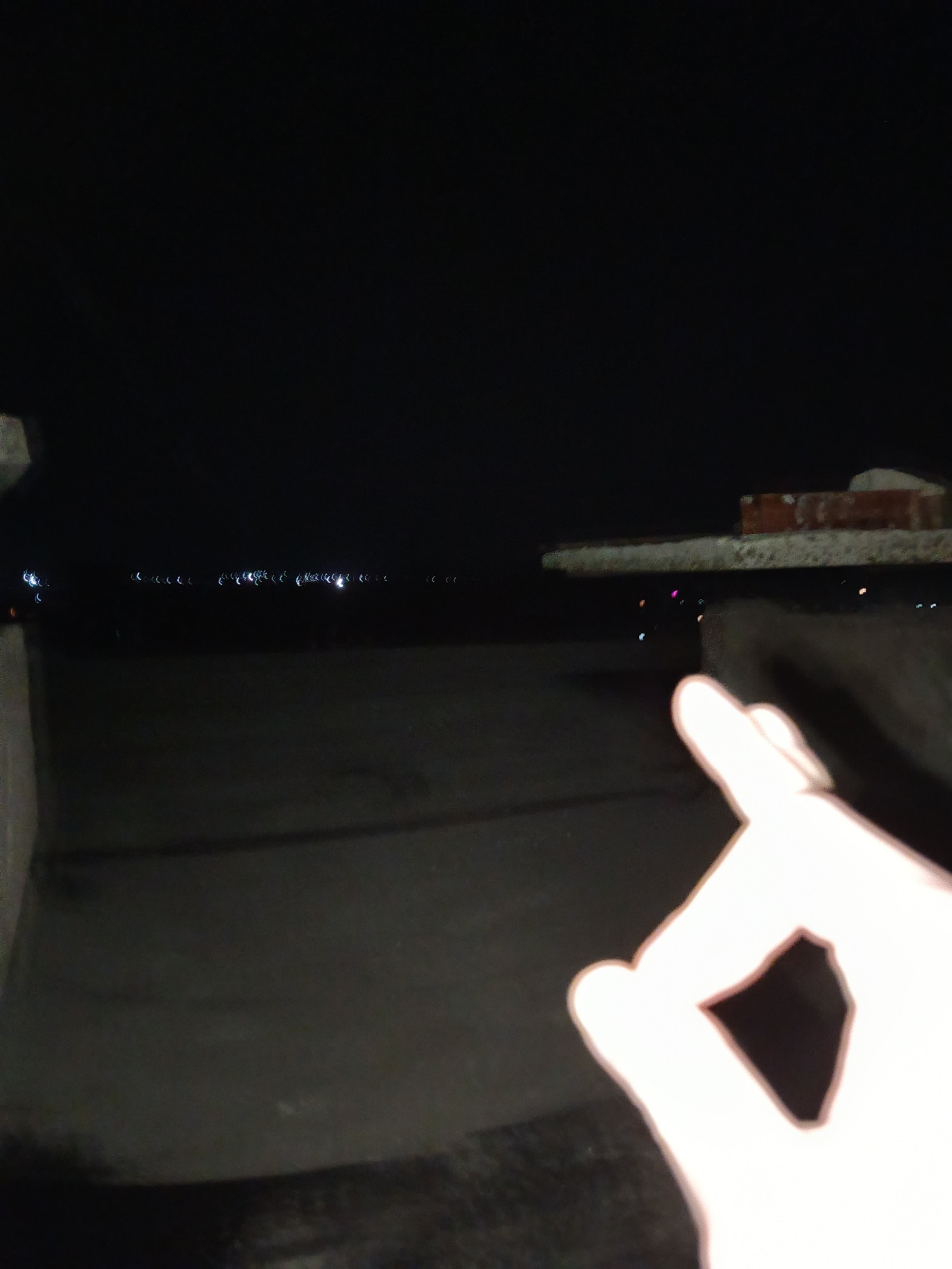 На крыше очень сильный ветер. В центре города годит свет огня не видно.